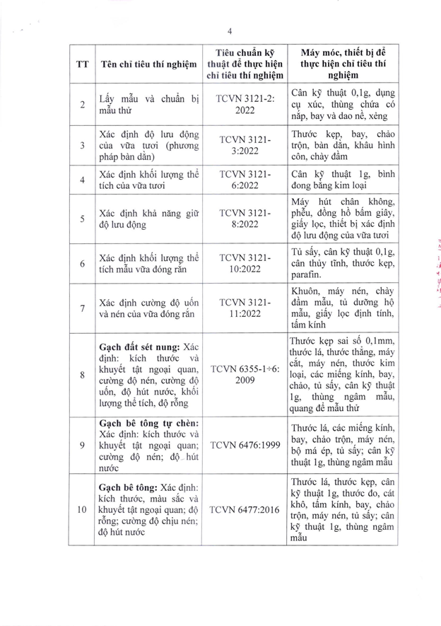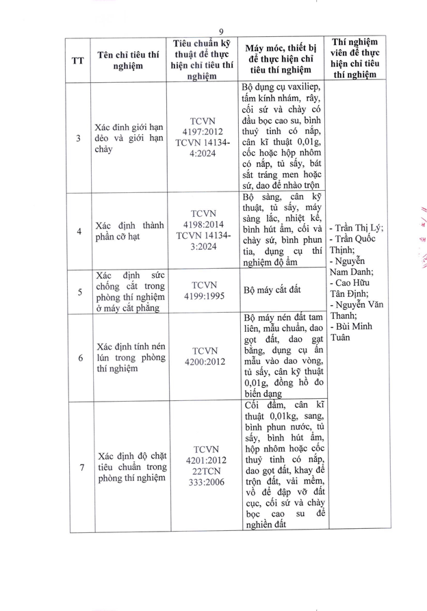 Công bố thông tin Tổ chức hoạt động Thí nghiệm Chuyên ngành Xây dựng